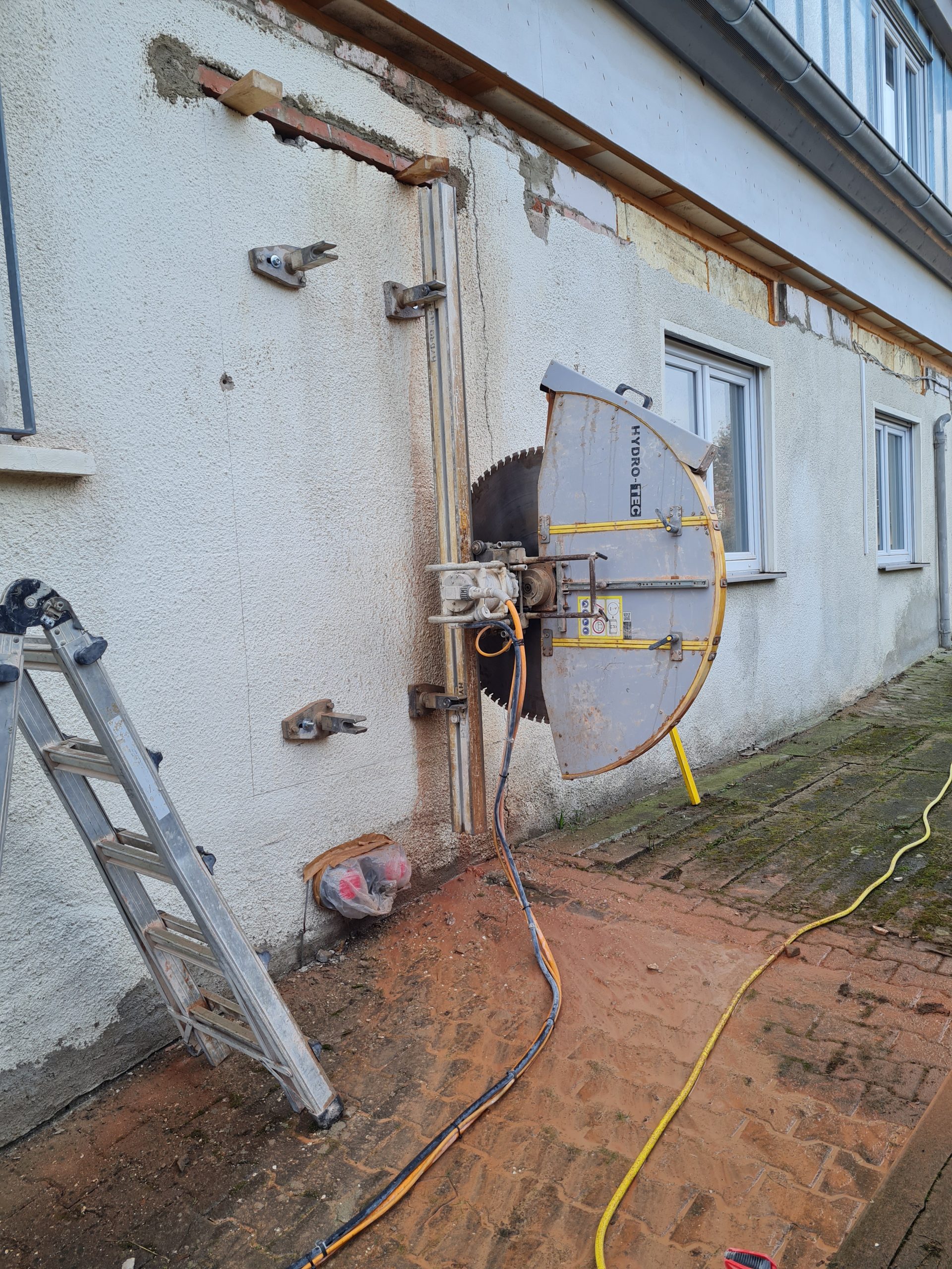 Für Türen, Fenster oder ganze Wanddurchbrüche: Wir schneiden Öffnungen präzise in Decken und Wände – auch über Kopf und wandbündig. Mit diamantbestückten Wandsägen entstehen saubere, gerade Kanten in Stahlbeton, Mauerwerk und Naturstein. Erschütterungsarm, kontrolliert und mit Blick auf die Statik, damit neue Räume entstehen, ohne die bestehende Substanz unnötig zu belasten.